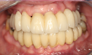 Once the upper arch implants were fitted she was able to eat and chew normally, so the lower arch was then carried out. As you can see from the final upper and lower bridges, this provided her with fixed teeth which look and feel like natural teeth and she is now able to talk, laugh and eat normally.