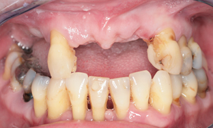 The teeth were removed and dental implants placed, maintaining a number of teeth throughout the healing phase so that temporary teeth could be used instead of temporary dentures.