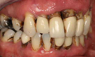 This lady came to us because her friends and family were saying that she was suffering from bad breath. As you can see from the initial photographs, she had bands of periodontal disease with lots of infected teeth and receded gums, with pus and infection throughout the mouth.
